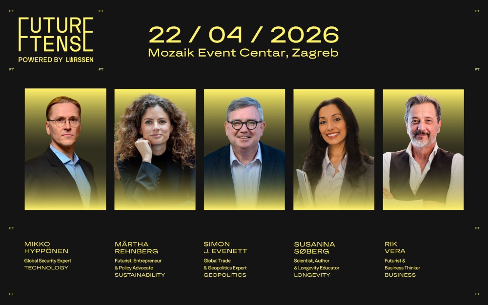 Zato ove godine, Future Tense powered by Lürssen u fokus razgovora o budućnosti poslovanja stavlja teme sigurnosti, konkurentnosti i dugovječnosti. U organizaciji agencije Komunikacijski laboratorij, šesto izdanje konferencije održava se 22. travnja 2026. u Mozaik Event Centru.
