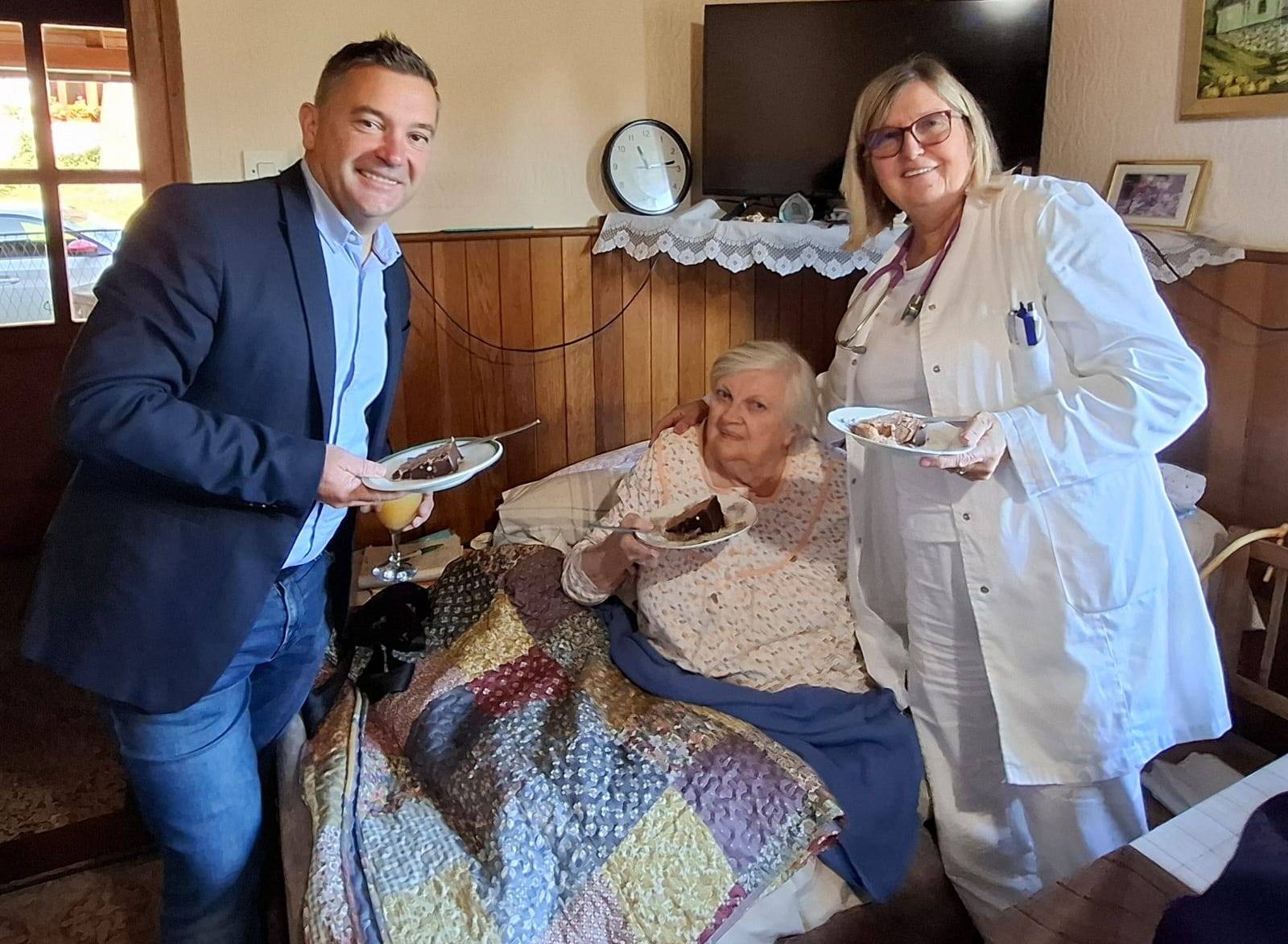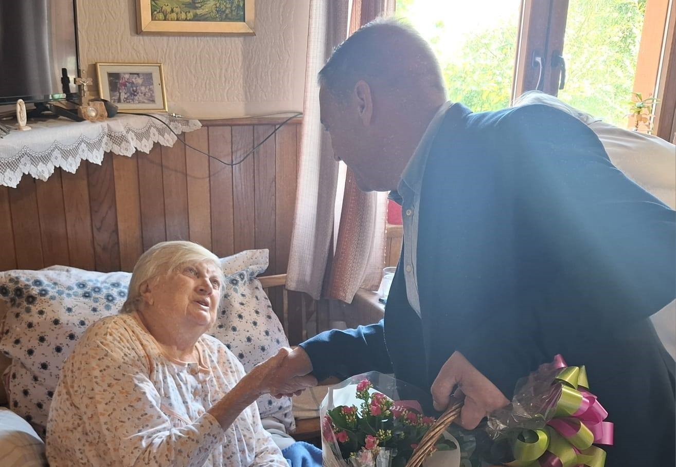 Gospođu Vjeru su posjetili, donijeli prigodan poklon i čestitali joj rođendan načelnik Općine Kumrovec, Robert Šplajt, doktorica Jasna Gmajnički, patronažna sestra Gordana Turjak, Jasmina Kadić iz Gradskog društva Crvenog križa Klanjec, kao i sestra Petra Krošlin iz ustanove Sestre Mace dom.