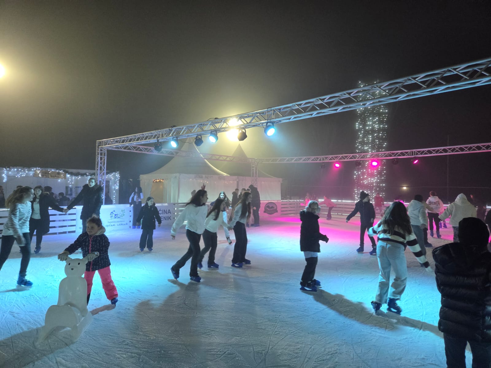 Po završetku službenog dijela programa klizalište je otvoreno za sve posjetitelje, a večer je nastavljena uz zabavni program i glazbeni nastup Siniše Biška. Dodatnu gastronomsku dimenziju donijela je promocija steakova s Black Bull Rancha Siniše Birčića, što je upotpunilo ukupni doživljaj adventske večeri. Uz klizalište su postavljene i drvene kućice s ponudom hrane i pića te veliki šator predviđen za nadolazeće koncerte i događanja.
