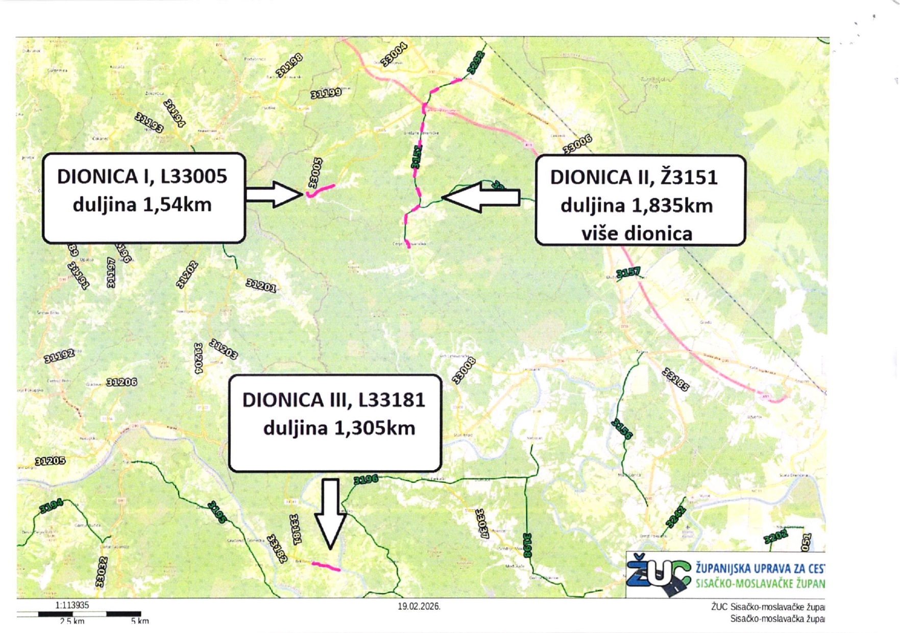 Dionica III – Brkiševina (L33181). Radovi uključuju modernizaciju makadamskog kolnika asfaltiranjem, sanaciju oštećenja kolnika, izradu bankina, čišćenje cestovnih kanala te izgradnju betonskog cijevnog propusta.