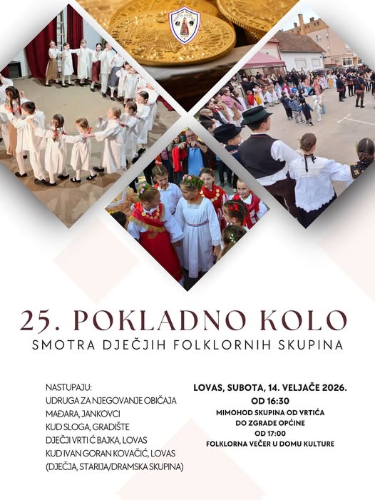 Općina Lovas poziva sve na jubilarno 25. Pokladno kolo, tradicionalnu manifestaciju u organizaciji KUD-a Ivan Goran Kovačić Lovas!