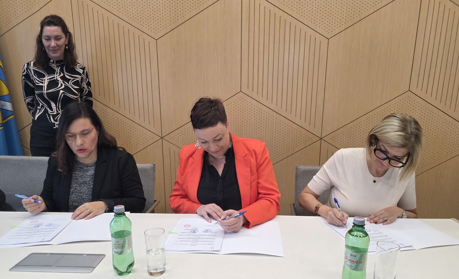 Načelnica Općine Matulji Ingrid Debeuc te predstavnice sindikata – Iskra Vostrel Prpić, predsjednica Sindikata radnika u predškolskom odgoju i obrazovanju Hrvatske, i Ingrid Čavić, potpredsjednica Sindikata odgoja i obrazovanja, medija i kulture Hrvatske – potpisale su u matuljskoj vijećnici novi Kolektivni ugovor za djelatnike Dječjeg vrtića „Matulji“, koji će se primjenjivati u razdoblju od 1. siječnja 2026. do 31. prosinca 2029.